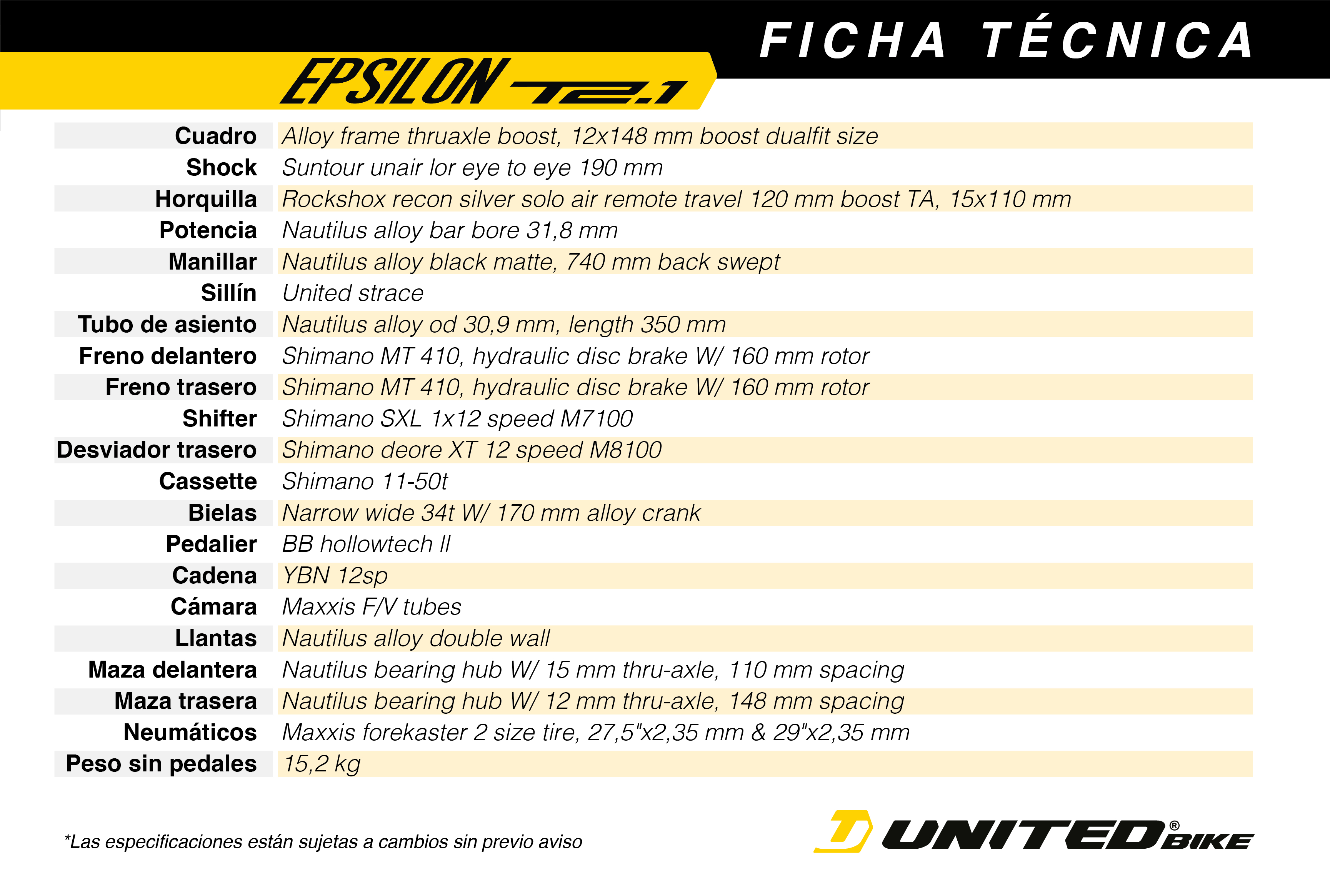 Equipada con un cuadro de aluminio hidroformado que combina ligereza y resistencia, la sólida horquilla Rockshox Recon Silver Solo Air de 120 mm de recorrido y el legendario grupo Shimano Deore XT de 1x12 velocidades, la Epsilon T2.1 te brinda la confianza y el rendimiento que necesitas para alcanzar tus metas y cumplir tus sueños sobre dos ruedas.